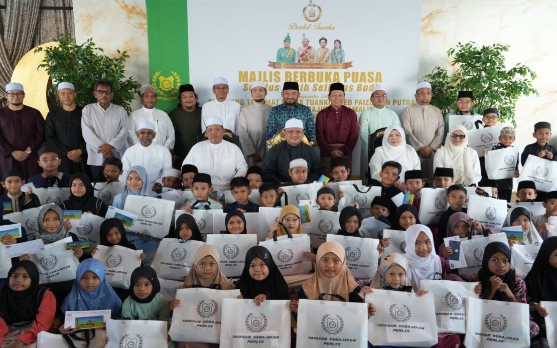 Pada majlis itu, Tuanku Syed Faizuddin Putra berkenan menyempurnakan penyampaian sumbangan Aidilfitri kepada kira-kira 60 kanak-kanak asnaf serta empat Orang Kurang Upaya (OKU).