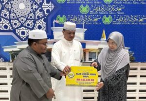 Peruntukan itu disampaikan secara simbolik oleh Raja Muda Perlis, Tuanku Syed Faizuddin Putra Jamalullail yang juga Yang Dipertua MAIPs kepada Pengarah Jabatan Hal Ehwal Agama Islam Perlis (JAIPs), Maizura Shamsuddin dalam satu majlis di Masjid Negeri Arau, baru-baru ini.