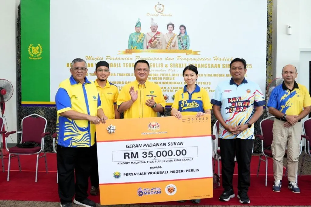 Dalam majlis yang sama, Tuanku Raja Muda turut berkenan menyaksikan penyampaian Cek Cura Geran Padanan Sukan (GPS) berjumlah RM35,000 daripada Kementerian Belia dan Sukan (KBS) kepada Persatuan Woodball Negeri Perlis, sebagai tanda sokongan terhadap usaha berterusan memartabatkan sukan woodball serta memperkasakan pembangunan sukan di Negeri Perlis. – JM