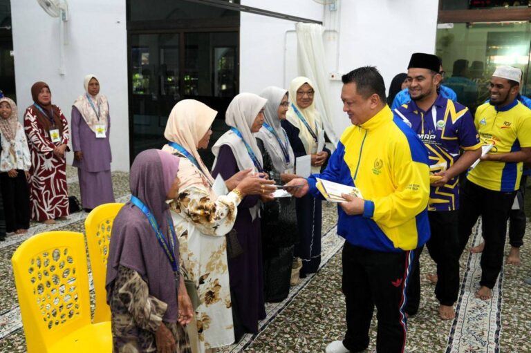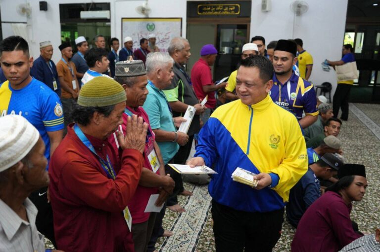 Di program tersebut Tuanku Raja Muda berkenan mengurniakan sumbangan agihan zakat MAIPs berjumlah RM47,000 kepada seramai 94 orang asnaf terpilih dalam kalangan anak kariah Kampung Kubang Gajah, dengan setiap di antara mereka menerima RM500. – JM